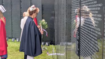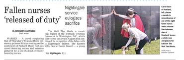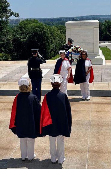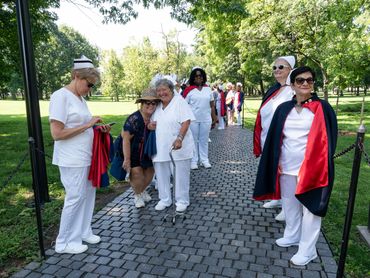 We hope to inspire others to consider this profession and remind audiences to respect and value nurses throughout the world. We've had a busy year with having an inaugural tribute to the 8 women who are on The Wall that Heals, being able to place a wreath at Tomb of the Unknown Soldier and had a posthumous service for a Civil War nurse. We've have 15 new guards this year bringing our total count to almost 70. We are honored to honor our colleagues. Nurses honoring nurses.
